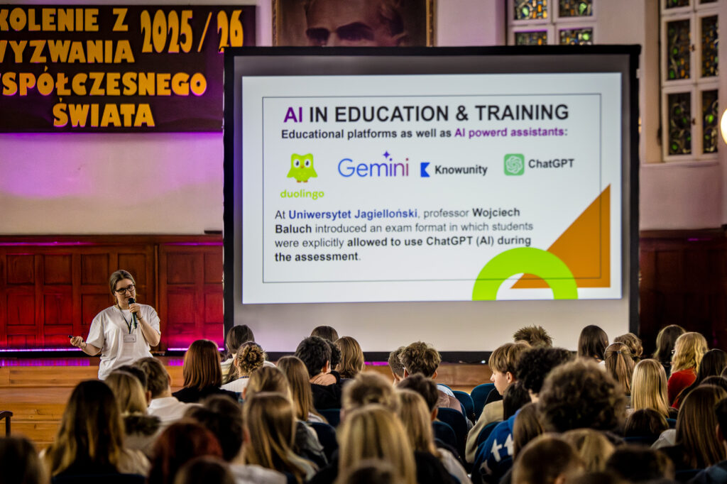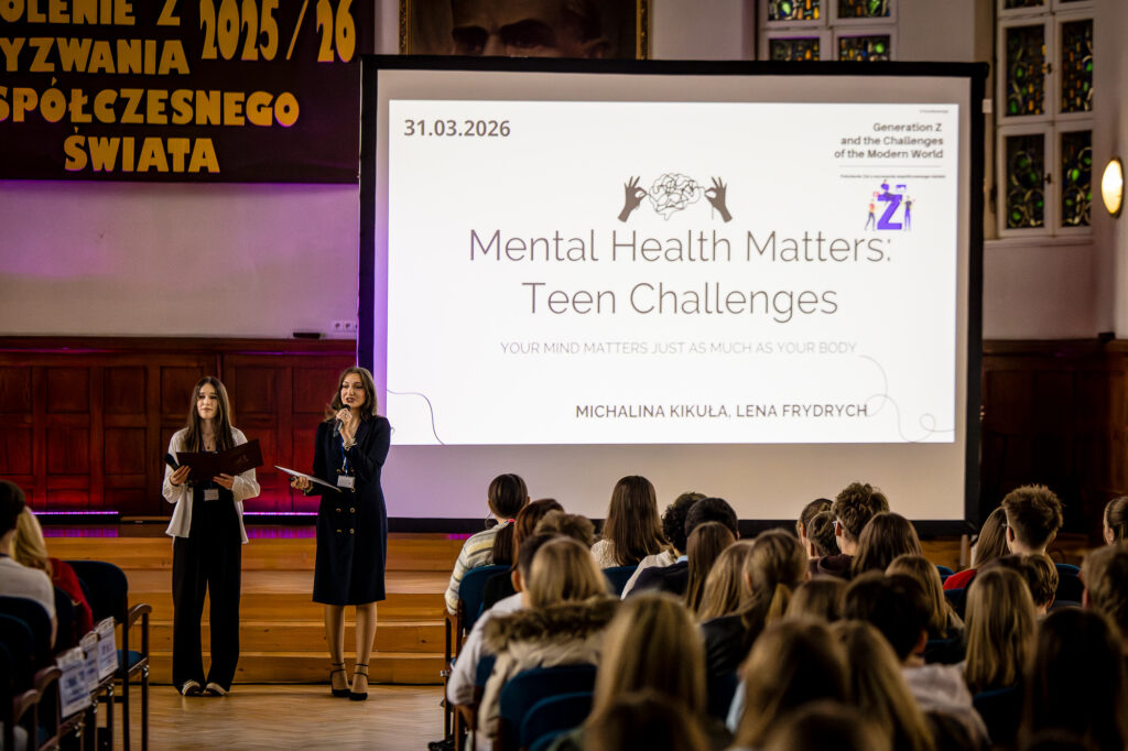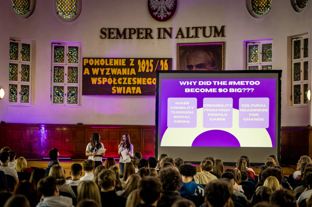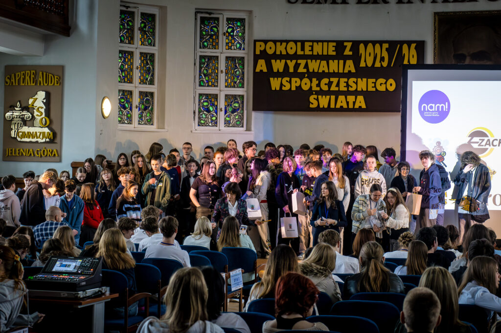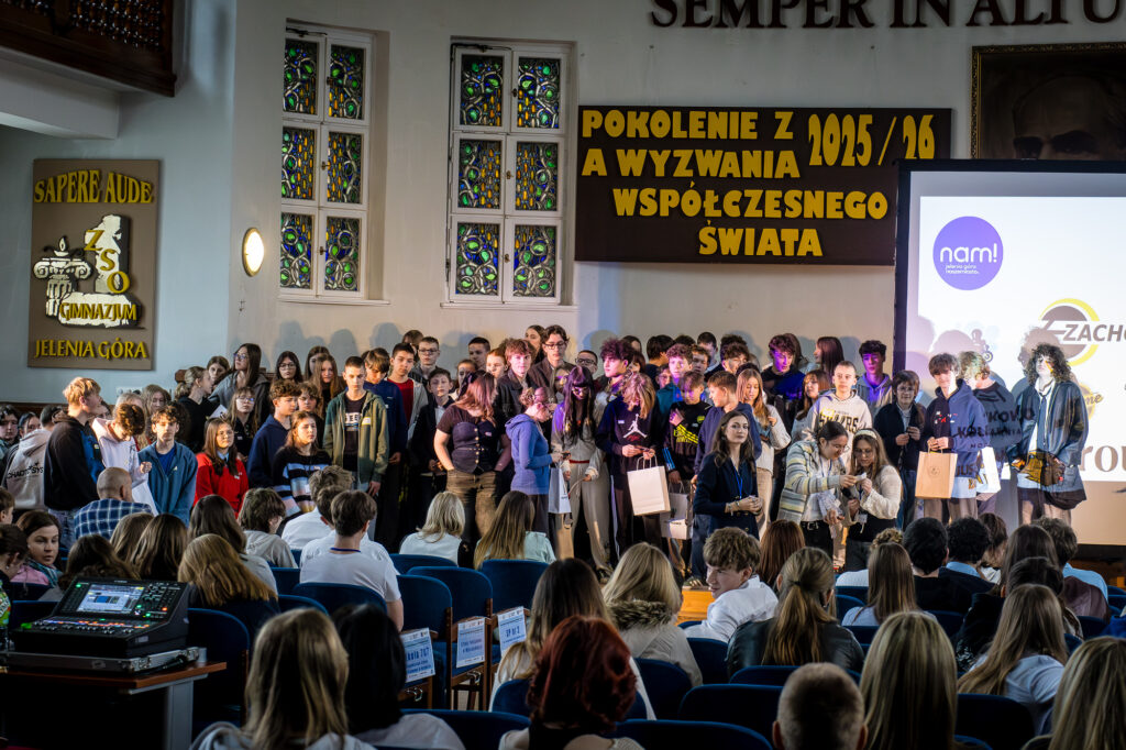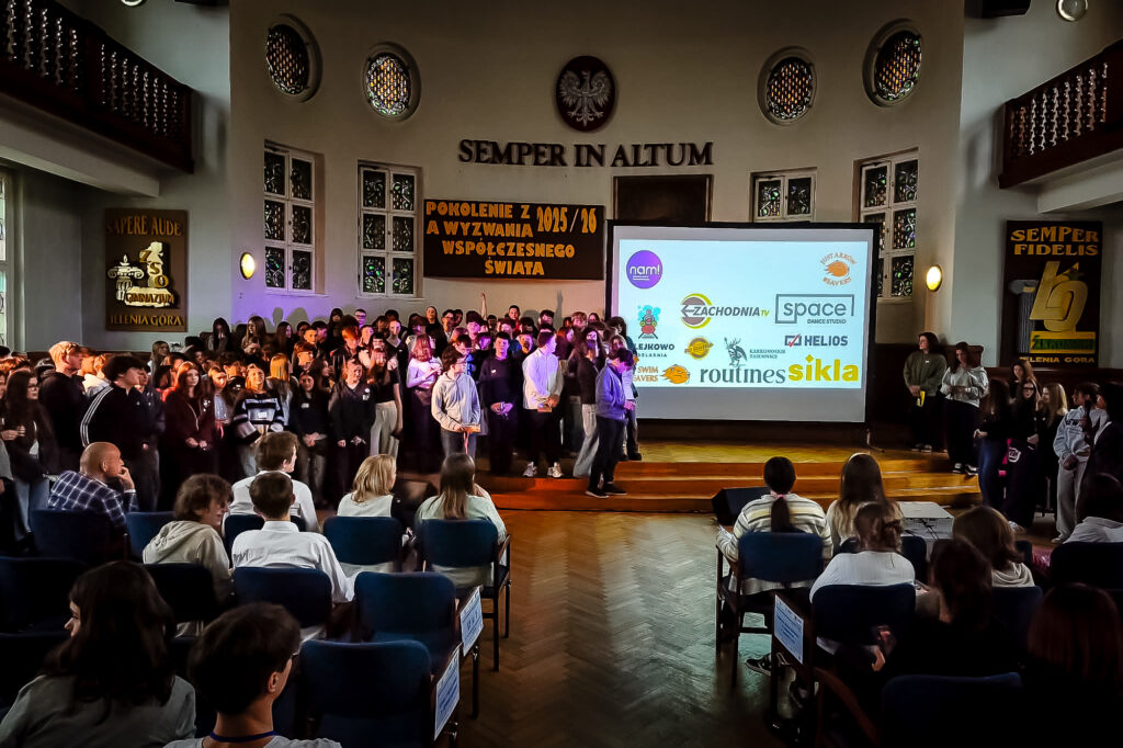 31 marca 2026 roku w naszej szkole odbyła się II Konferencja „Pokolenie Z a wyzwania współczesnego świata”. Wydarzenie zgromadziło ponad 220 uczniów klas ósmych ze szkół podstawowych z Jeleniej Góry, powiatu karkonoskiego oraz okolicznych miejscowości. Konferencja miała wyjątkowy charakter – w całości prowadzona była w języku angielskim, a jej program tworzyli przede wszystkim uczniowie liceum, którzy dzielili się swoimi przemyśleniami, doświadczeniami oraz spojrzeniem na współczesny świat.