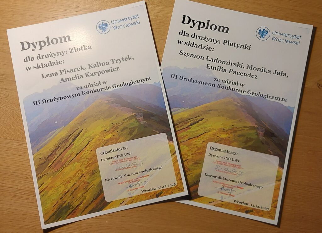 III Drużynowego Konkursu Geologicznego, który odbył się 12 grudnia we Wrocławiu.