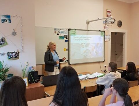 18–19 marca w naszej szkole gościliśmy dr Ilonę Czechowską – germanistkę, pracownicę Biblioteki Uniwersyteckiej Uniwersytetu Europejskiego Viadrina we Frankfurcie nad Odrą w Niemczech. Pani doktor specjalizuje się w językoznawstwie, teorii i praktyce przekładu (język niemiecki – język polski, język polski – język niemiecki), a także w bibliotekoznawstwie i informacji naukowej.