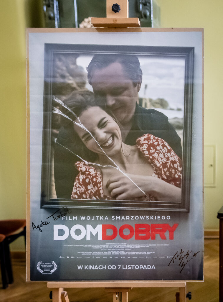- plakat z filmu Wojciecha Smarzowskiego pt. „Dom dobry” z podpisami głównych aktorów Agaty Turkot i Tomasza Schuchardta