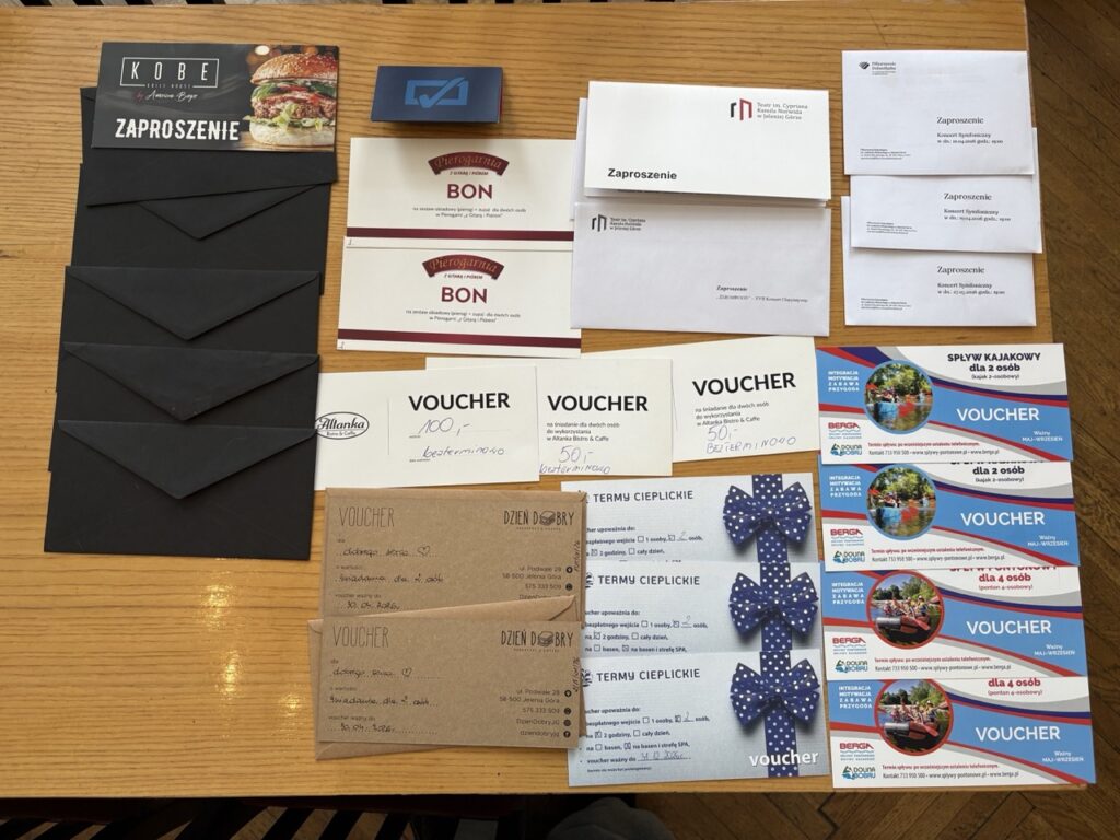 - zaproszenia do Filharmonii Dolnośląskiej w Jeleniej Górze