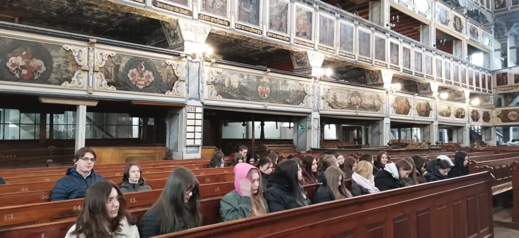 Następnie udaliśmy się do Jawora, żeby zwiedzić zabytkowy drewniany kościół ewangelicki – Kościół Pokoju, znajdujący się na liście Światowego Dziedzictwa UNESCO. Ujęło nas nie tylko bogactwo malowideł, ale również niezwykle przyjazny rezydent świątyni – czarna kotka.