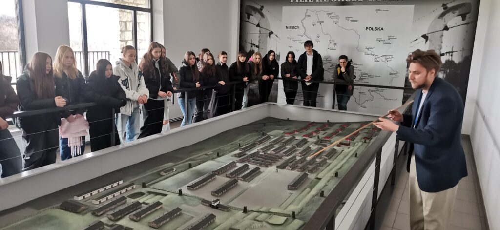 Program rozpoczęliśmy od zwiedzania niemieckiego nazistowskiego obozu koncentracyjnego Gross Rosen, w obecnej Rogoźnicy. Tam oprowadzono nas po terenie obozu, zwiedziliśmy wystawy stałe oraz obejrzeliśmy film, w którym byli więźniowie opowiadają o życiu obozowym i swojej ogromnej traumie.