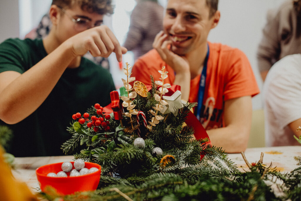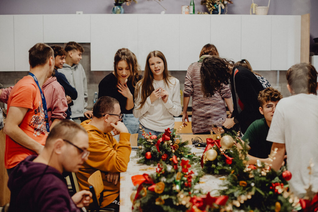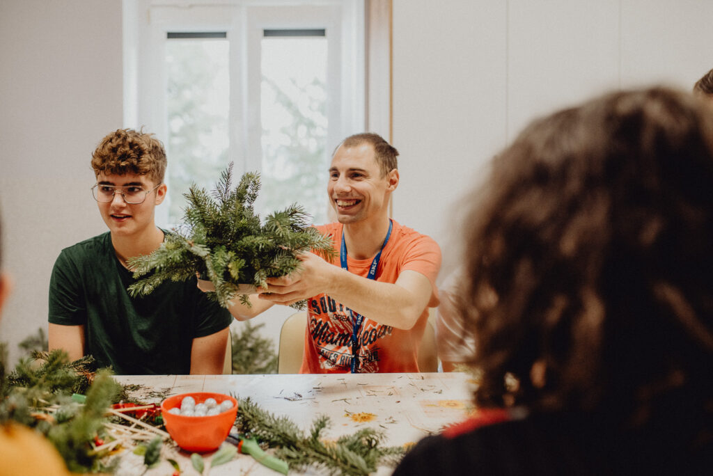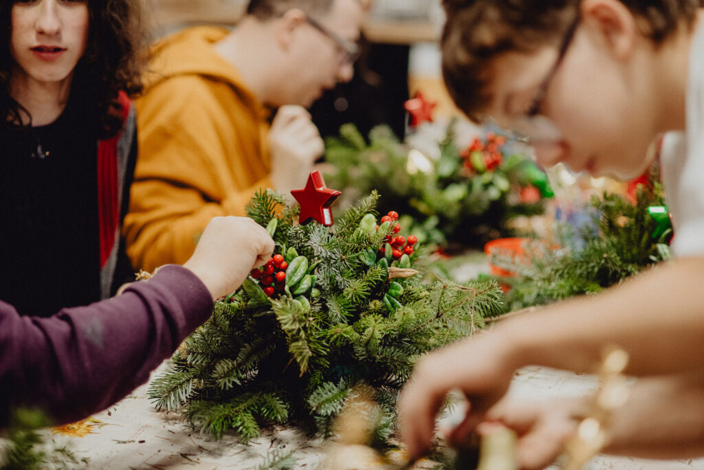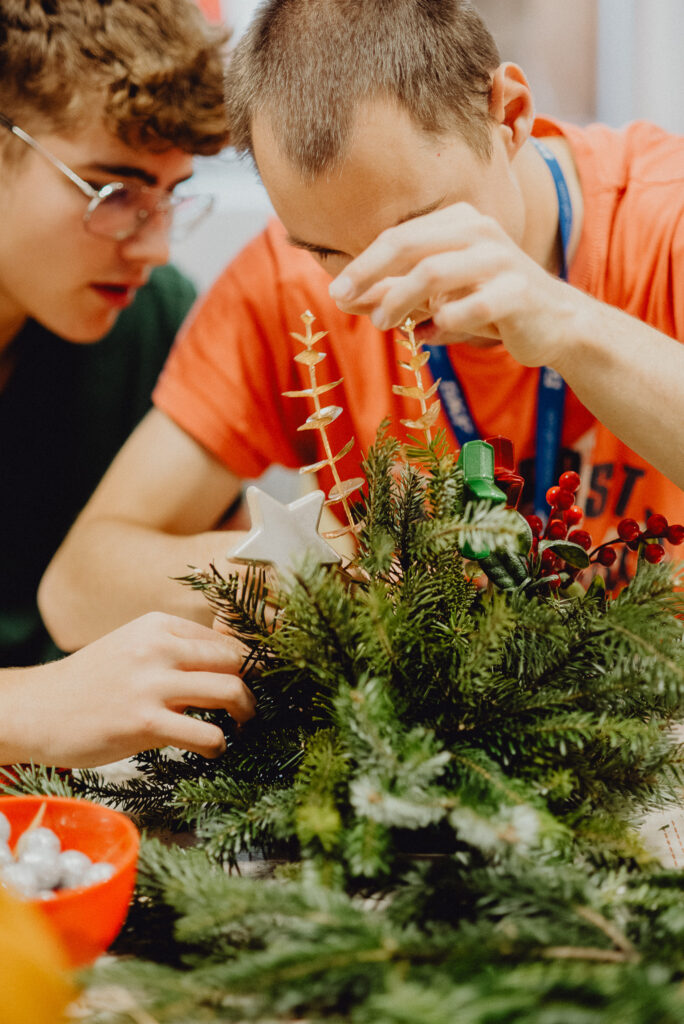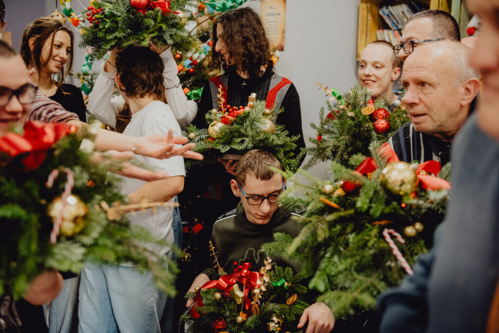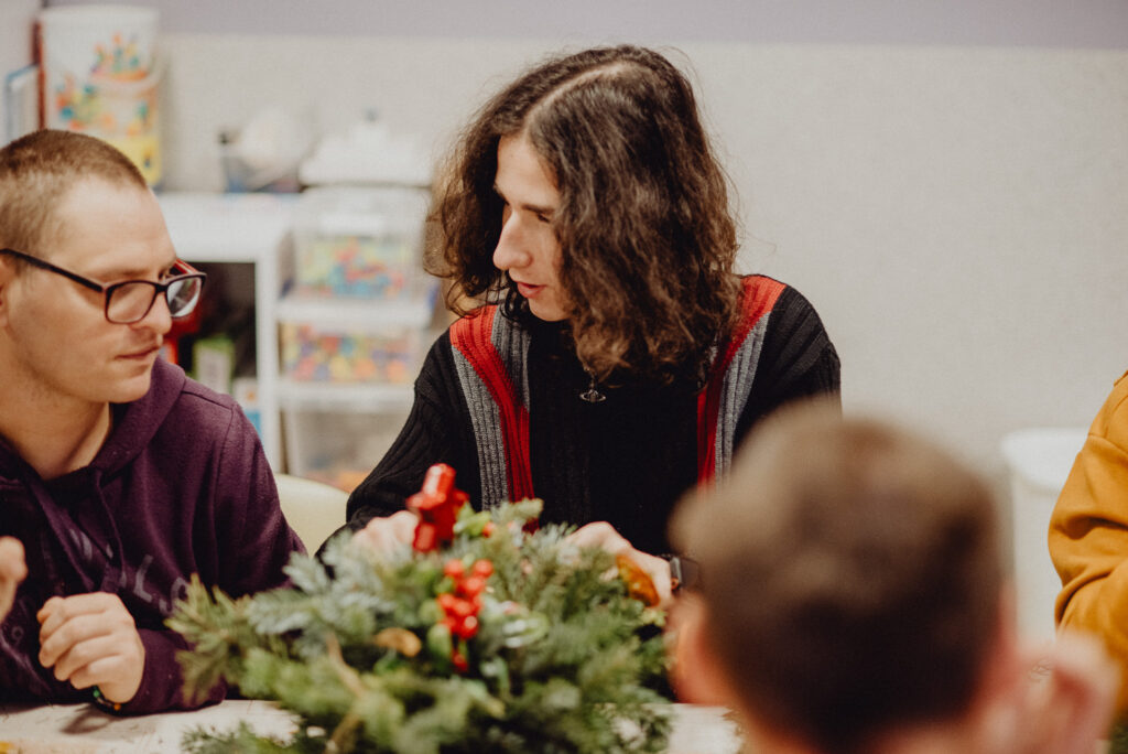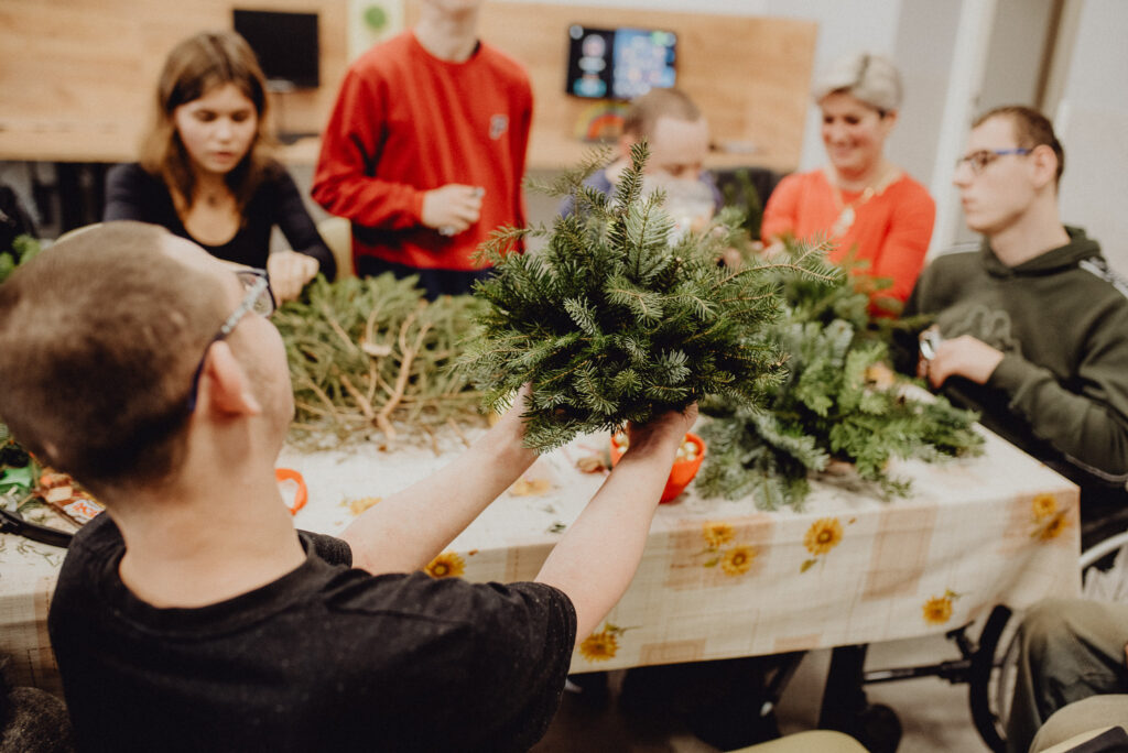 Wizyta pedagoga i uczniów w Domu Pomocy Społecznej „Junior” – warsztaty tworzenia świątecznych stroików